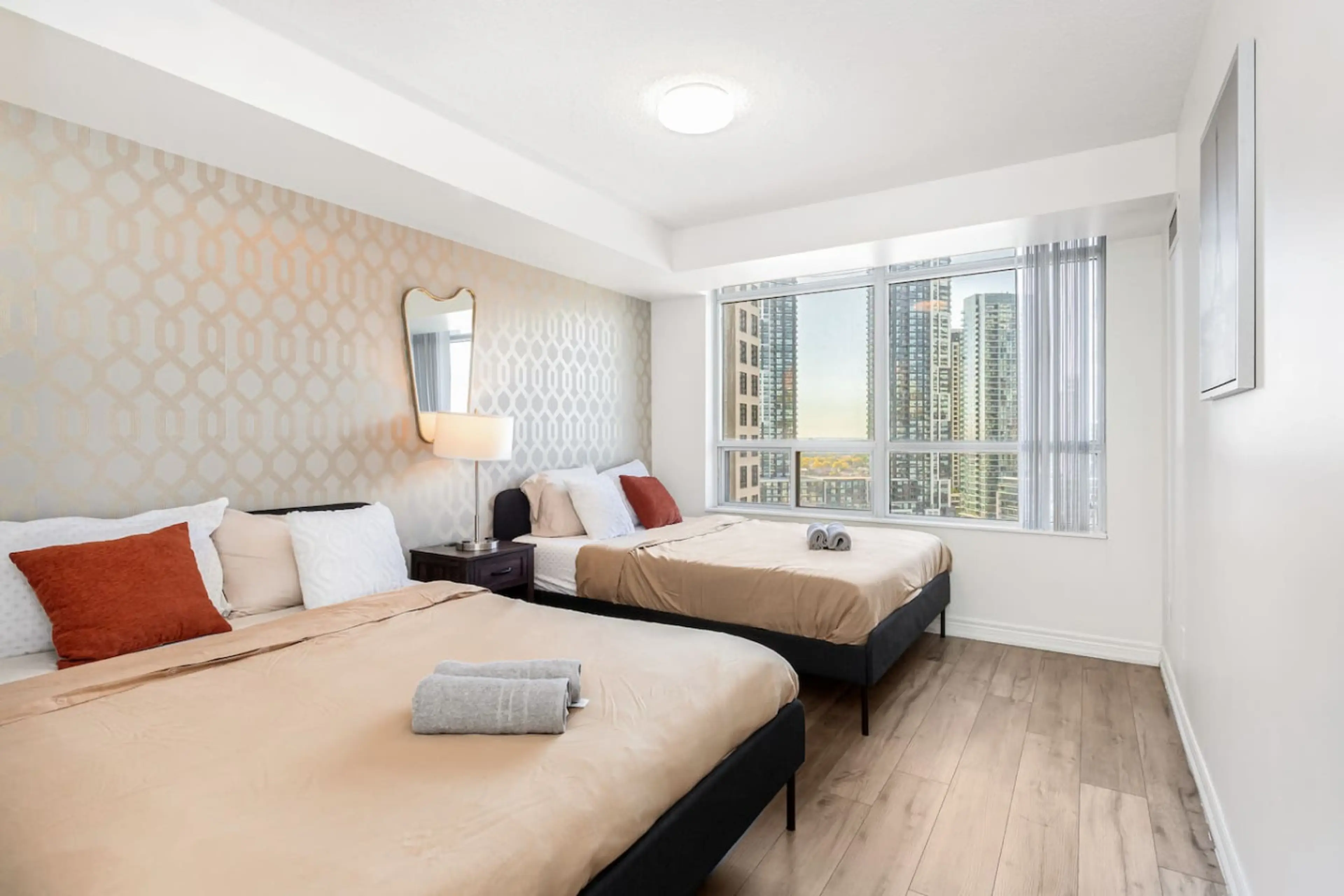 Welcome to your elevated escape — a spacious 3-bedroom, 2-bath high-floor condo located steps from Square One. Enjoy sweeping 180° panoramic views of the city and Celebration Square, where you can watch lively events and dazzling fireworks right from your window or private balcony. ✔Living Space Th...