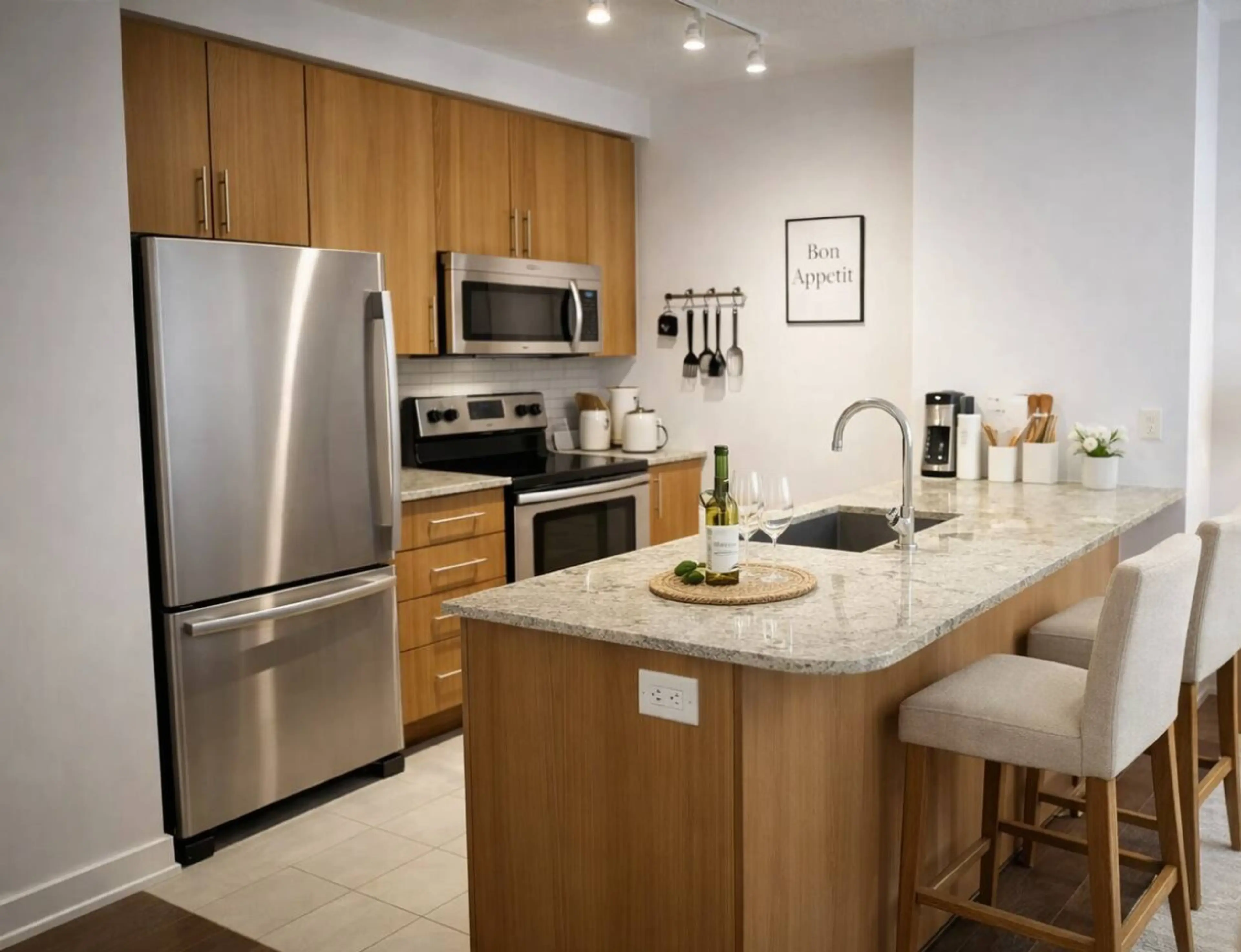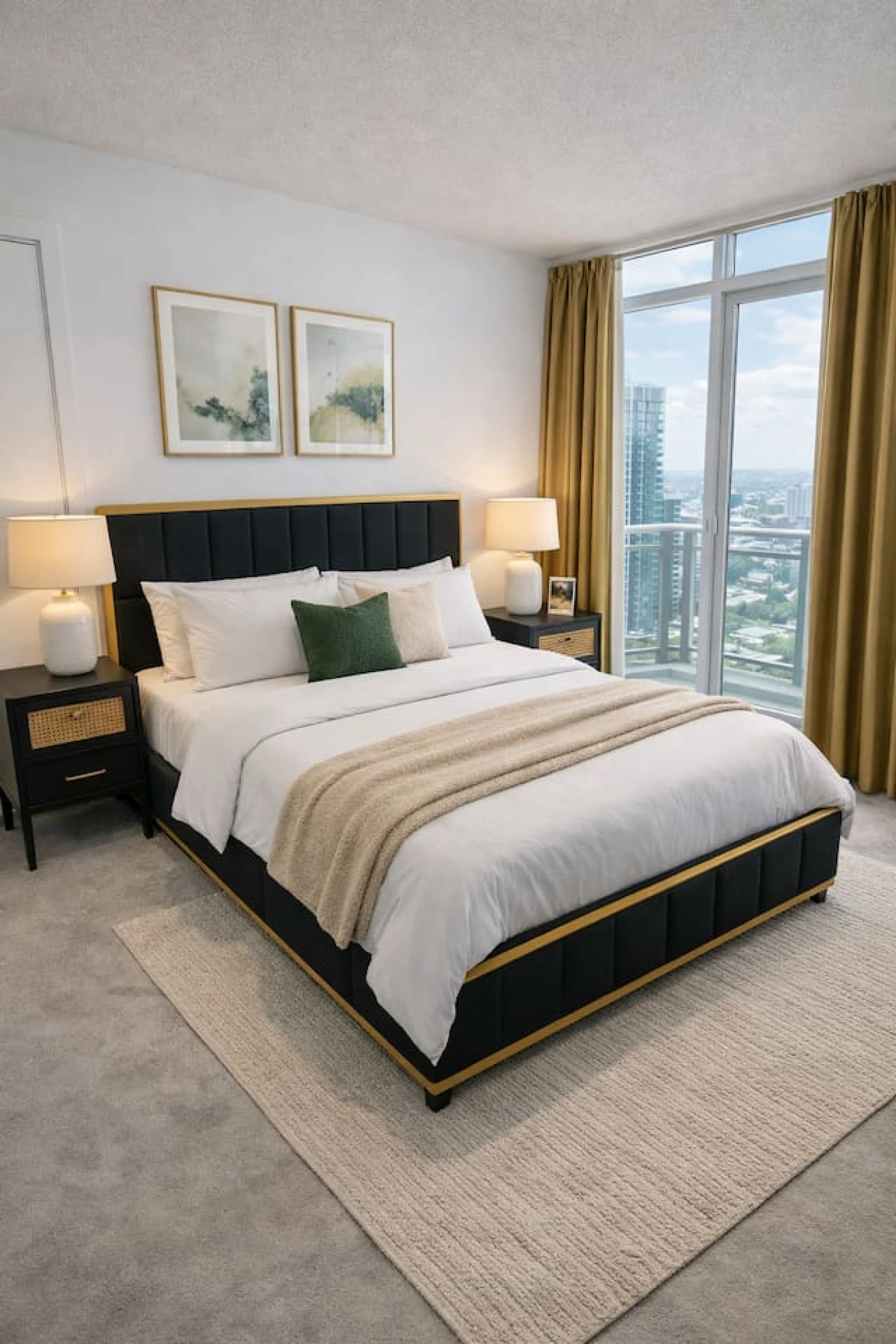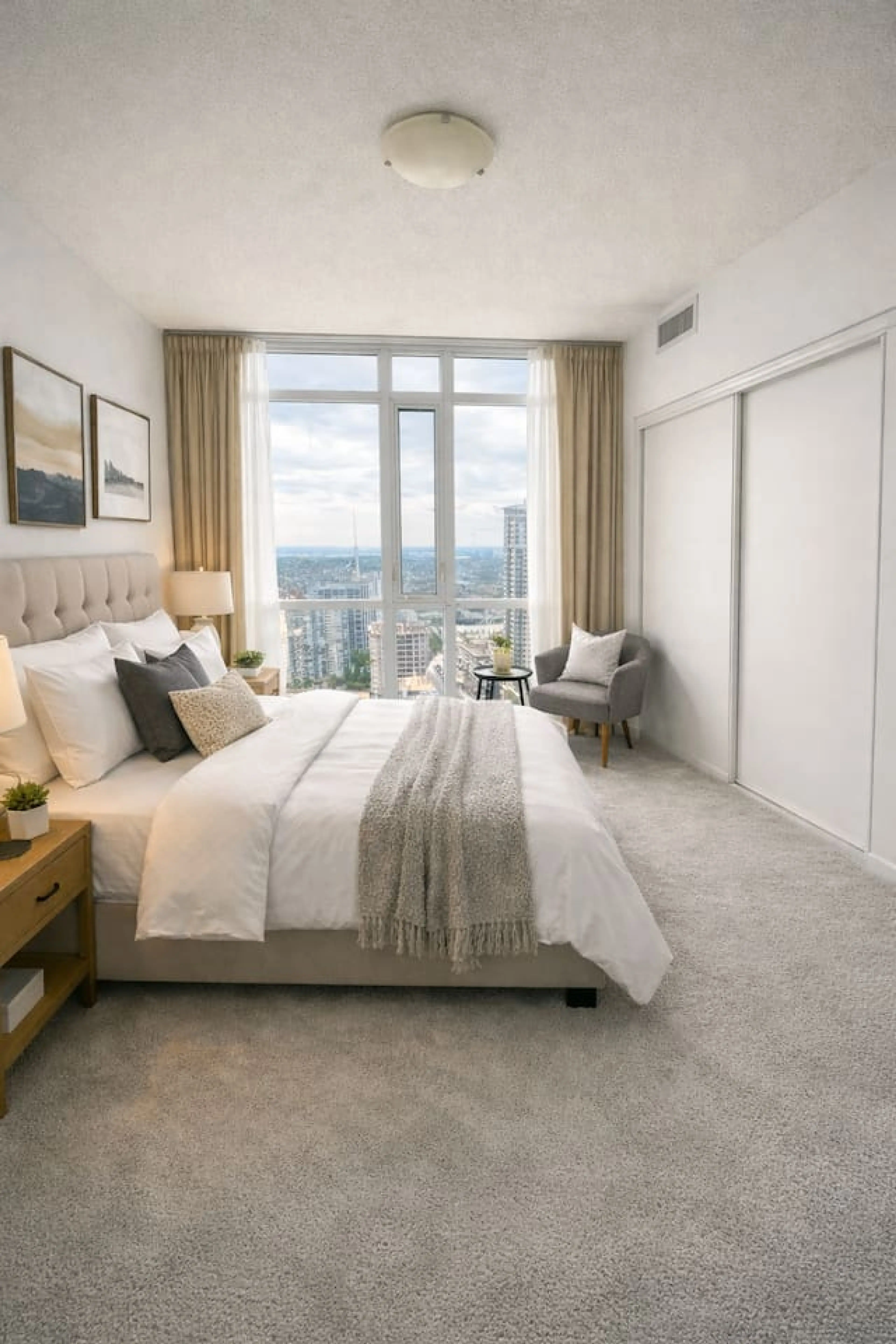 Enjoy a comfortable stay in this modern 2-bedroom, 2-bathroom condo located on a very high floor with breathtaking city views. The space is bright and thoughtfully furnished, featuring a fully equipped kitchen, cozy living area, and large windows that showcase the skyline both day and night. Conven...